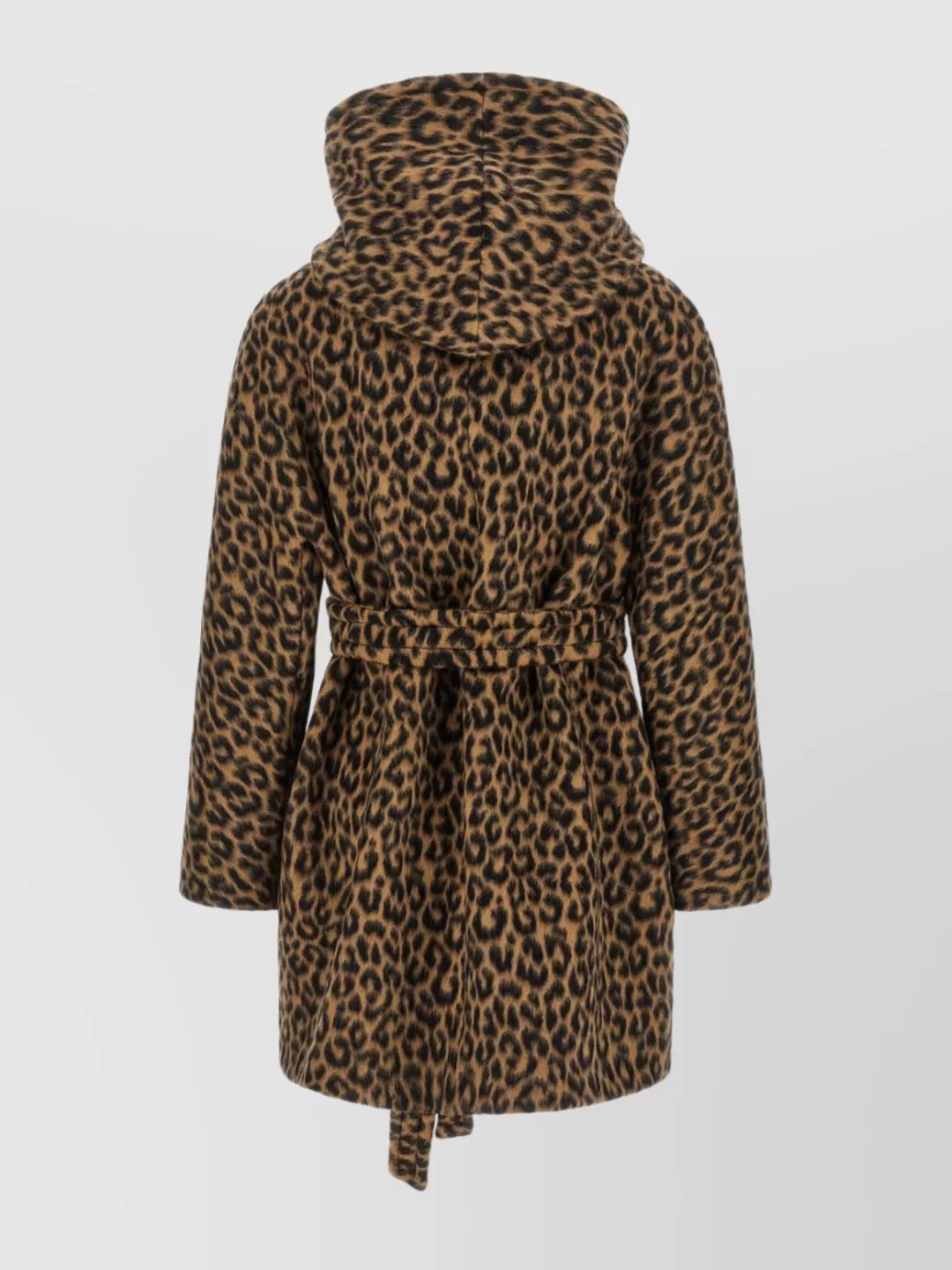 animal print hooded coat belted