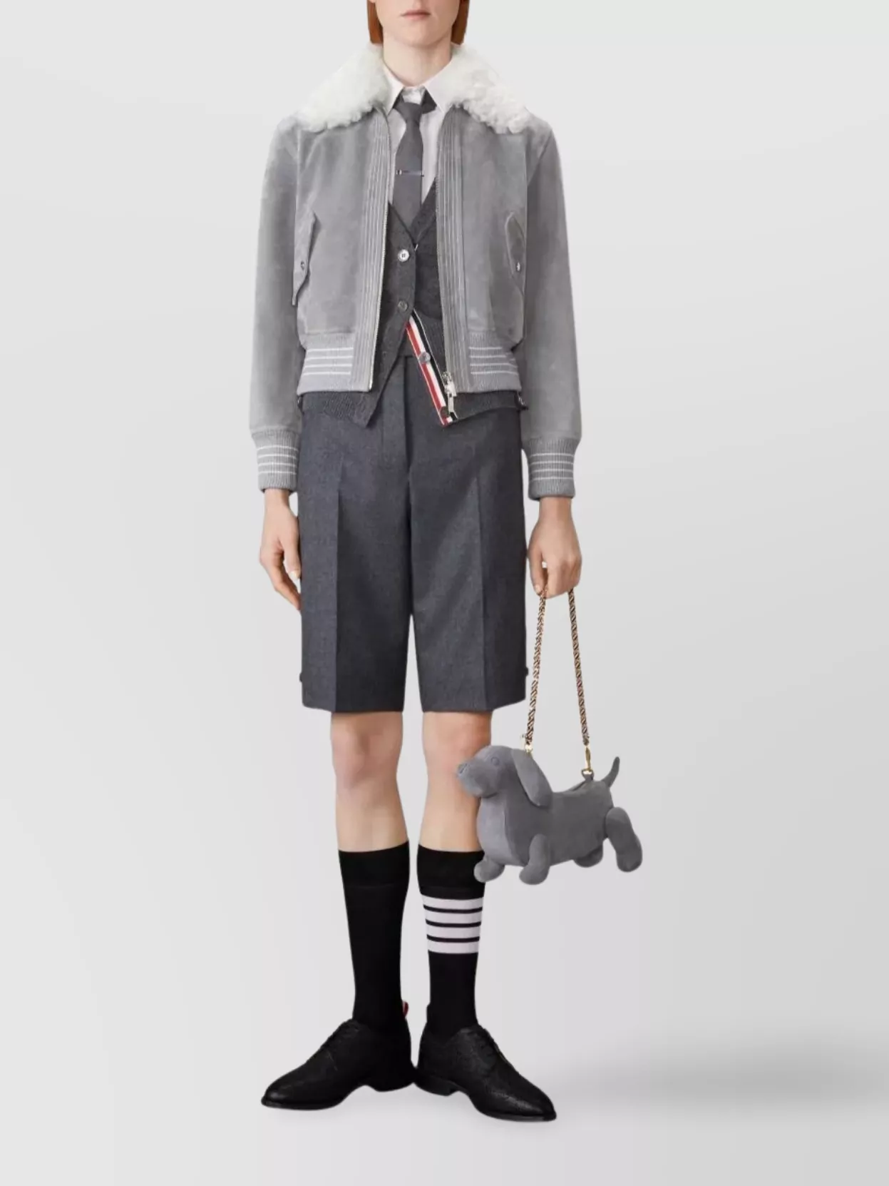 Thom Browne is an American luxury fashion brand known for its tailored, preppy style with a modern twist. Founded in 2001, it gained fame for its signature shrunken suits, unique proportions, and meticulous craftsmanship. The brand blends classic American aesthetics with innovative design, offering menswear, womenswear, and accessories that push the boundaries of traditional tailoring. Read more
