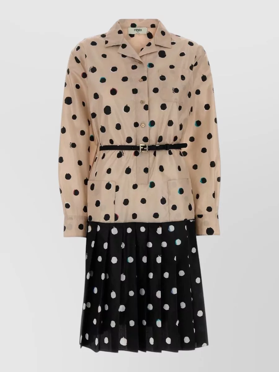 Fendi wool dress with embroidered ribbed hem and short sleeves