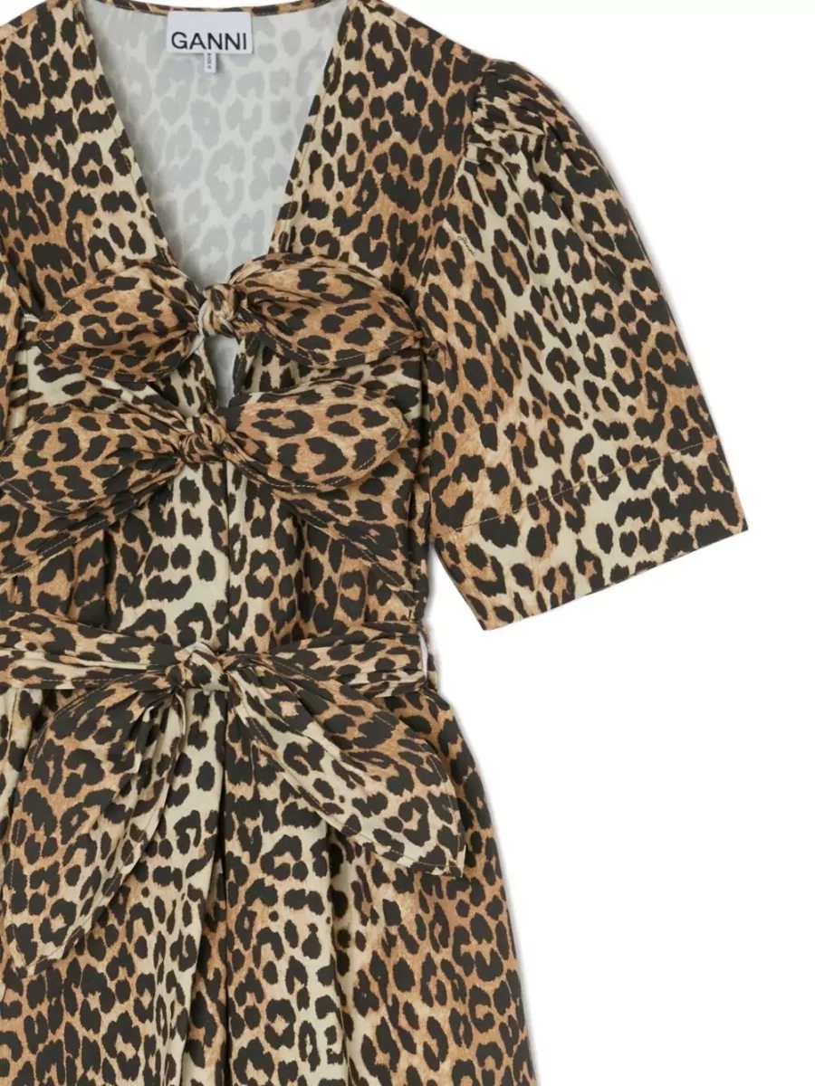 Ganni organic cotton mini dress leopard knot