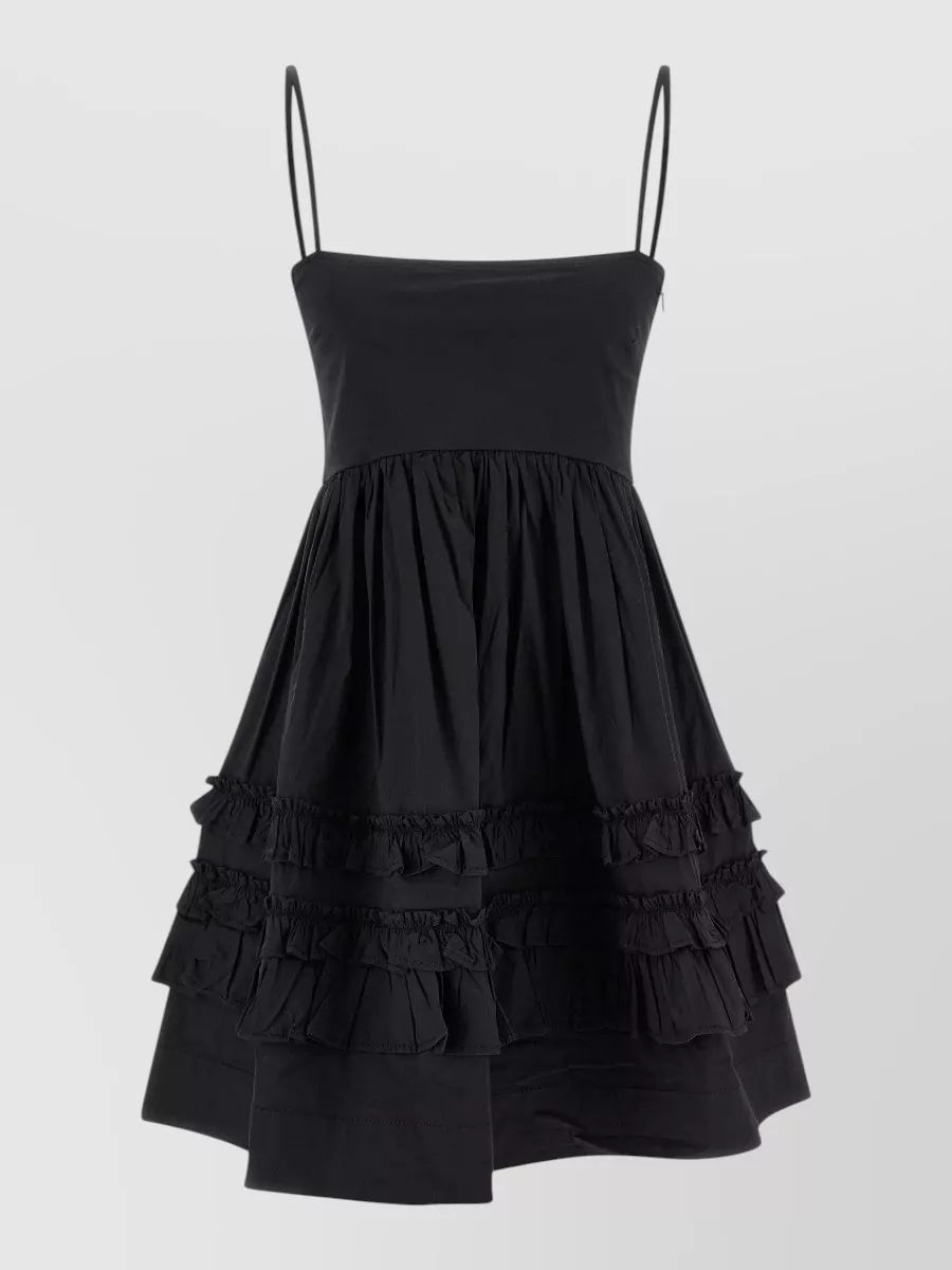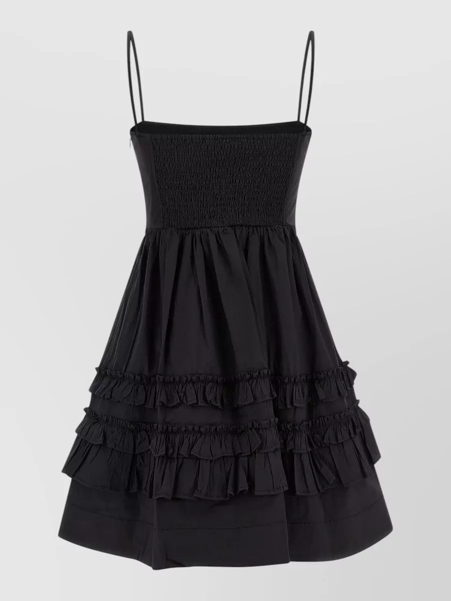 Ganni mini dress frill flared skirt smocked back