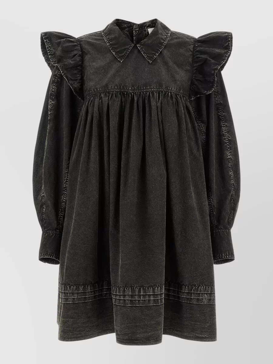 Ganni denim dress with embroidered hem and pockets