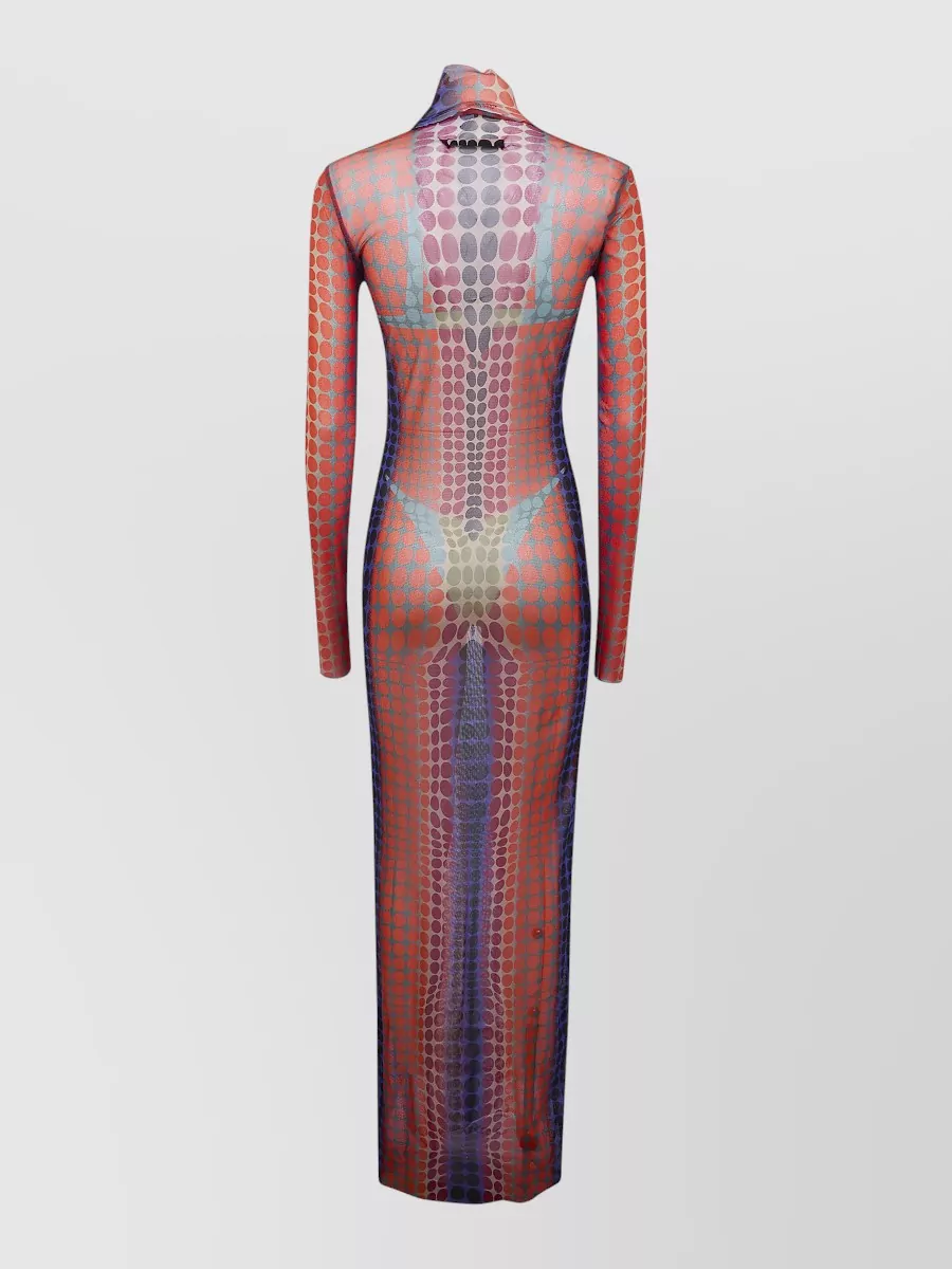 Jean Paul Gaultier mesh high neck long dress printed "fire"
