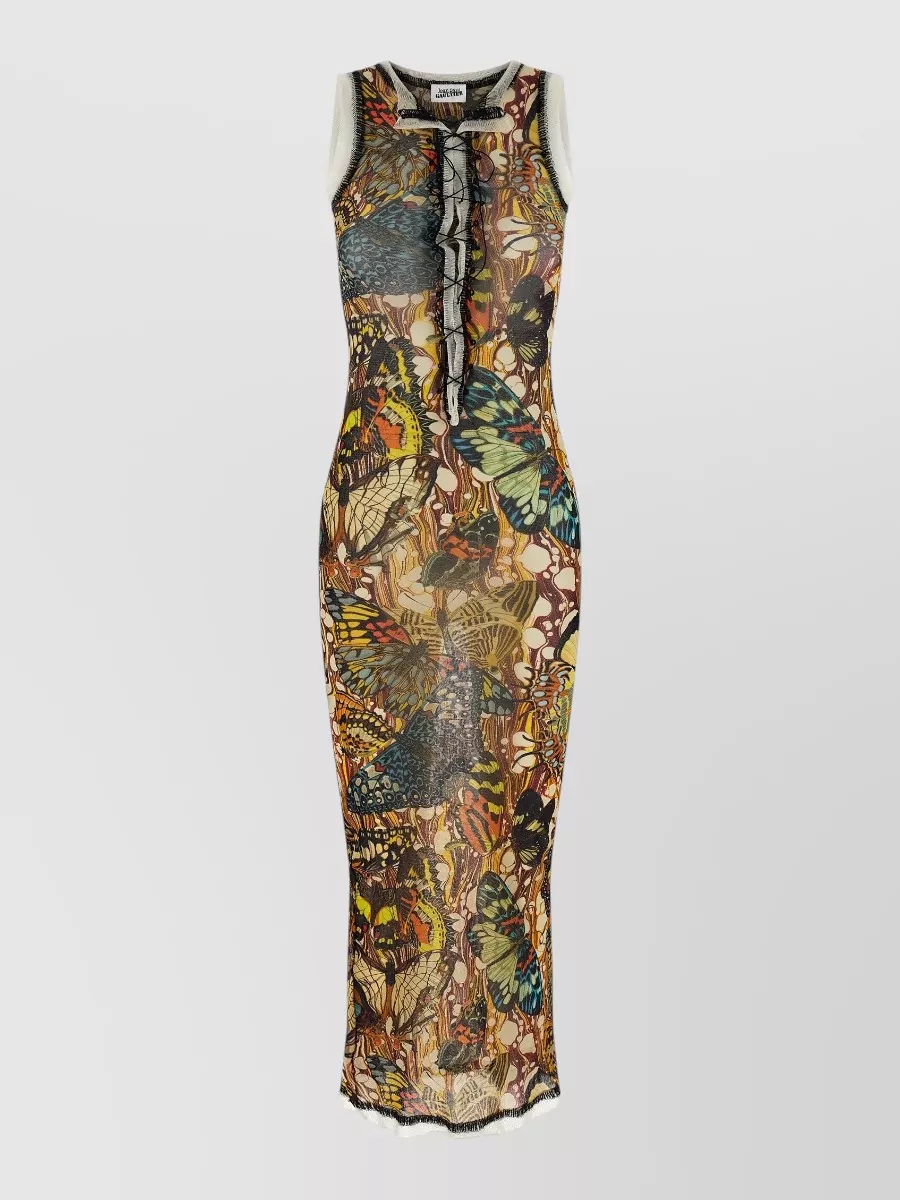 Jean Paul Gaultier reedition butterfly print dress lace up