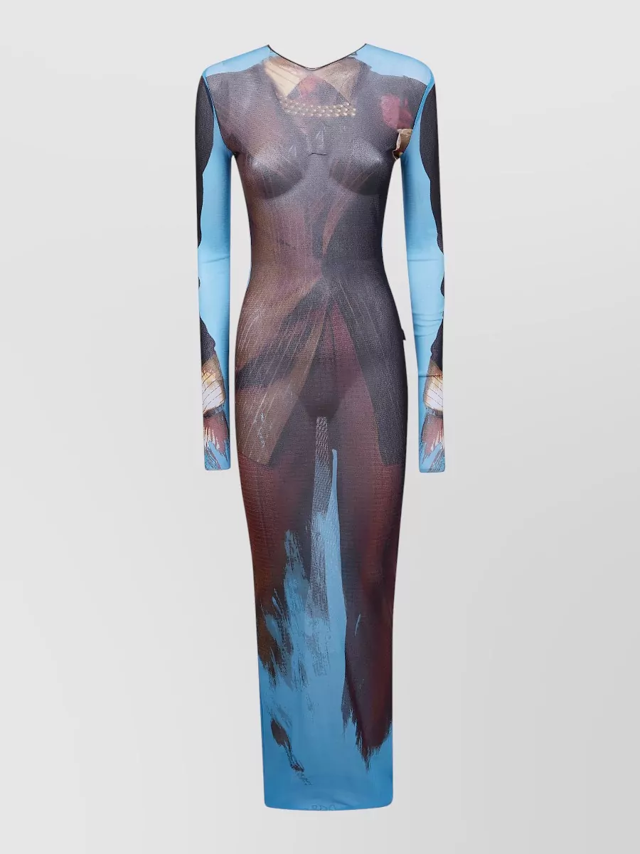 Jean Paul Gaultier mesh long dress printed "pigalle"