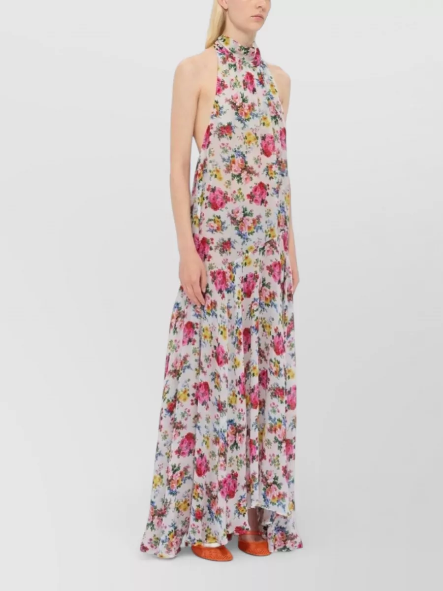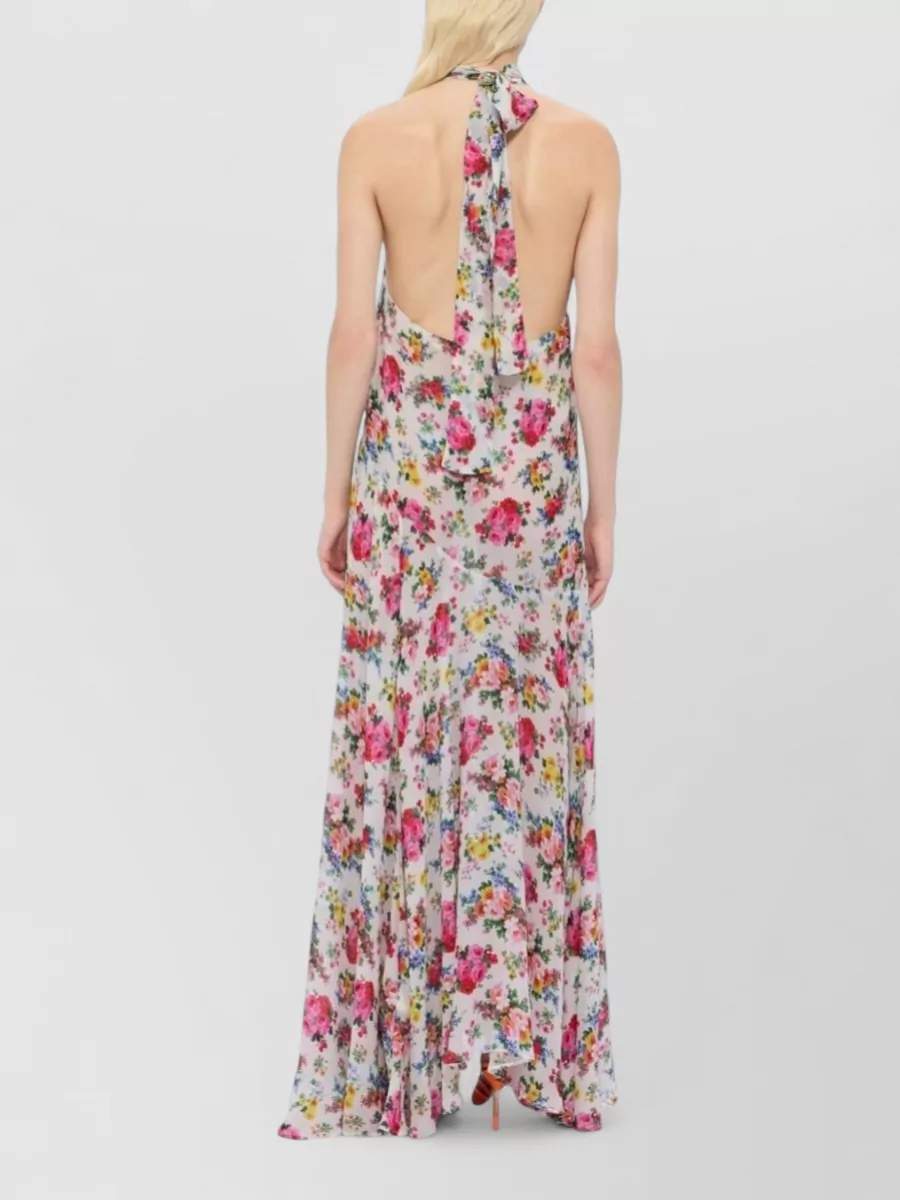 floral halter neck dress bow detail