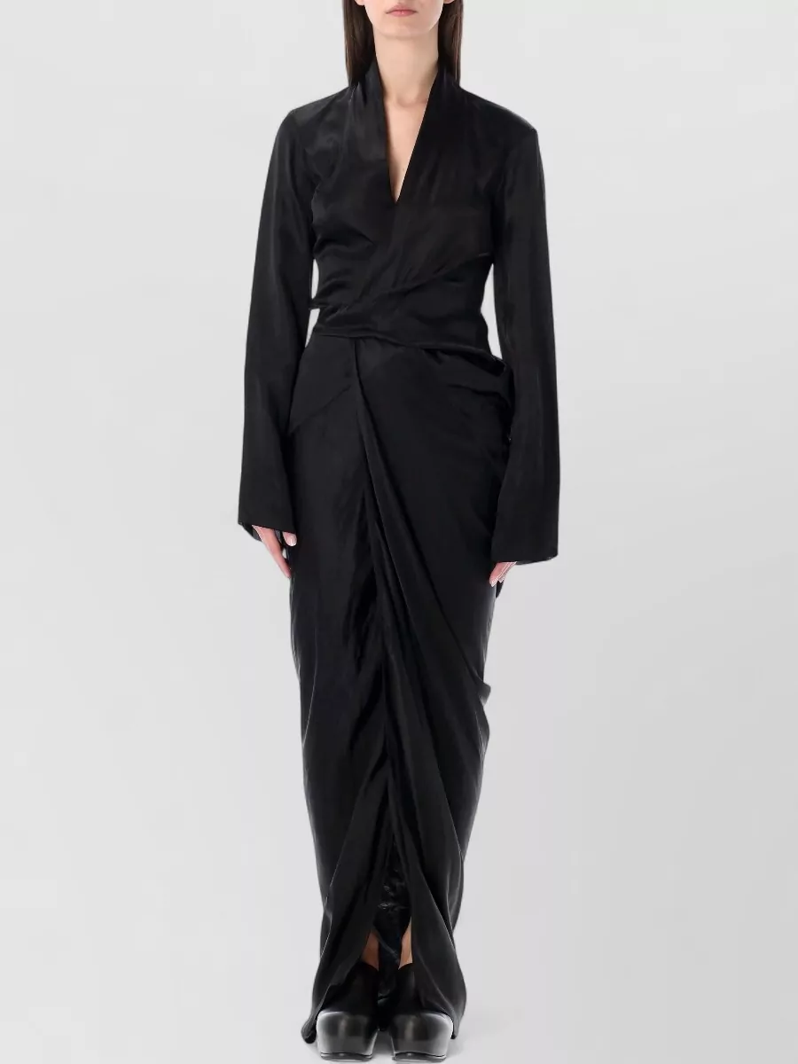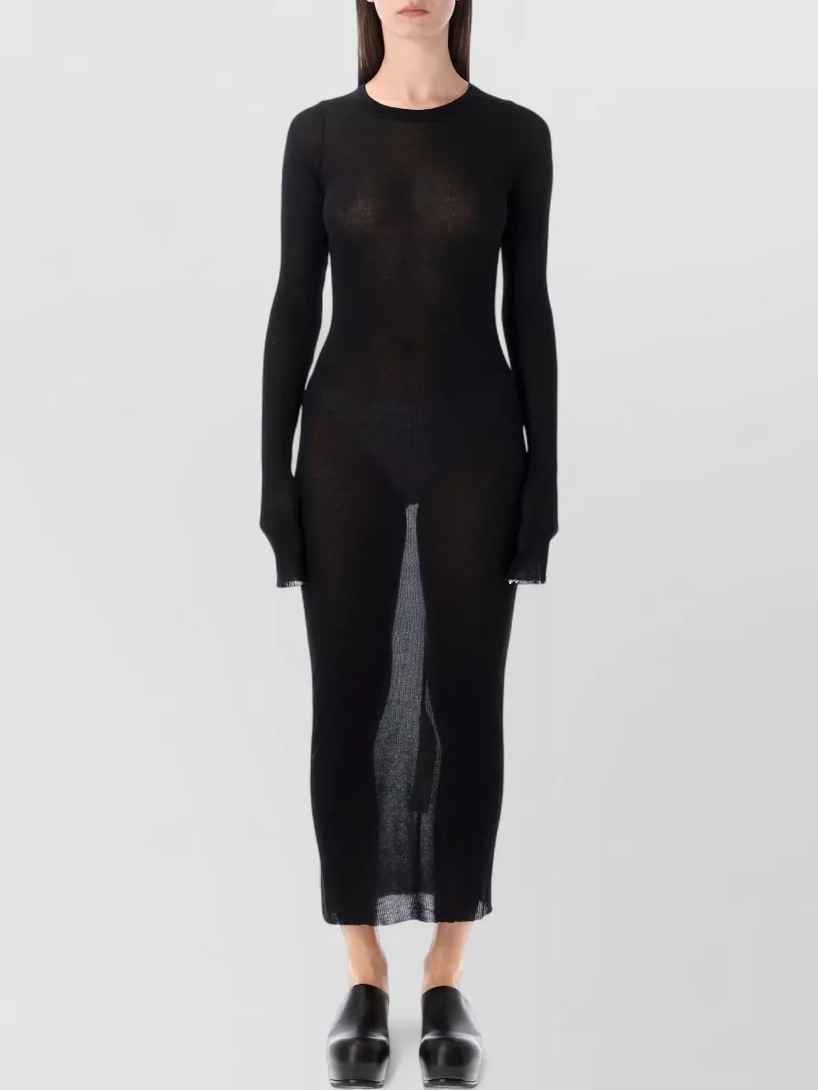 Rick Owens maxi dress with ribbed texture and long sleeves