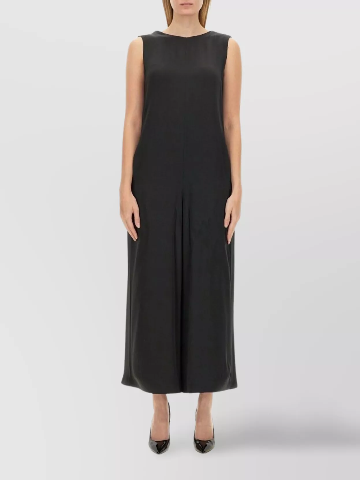 S Max Mara etruria square neckline sleeveless dress front slit