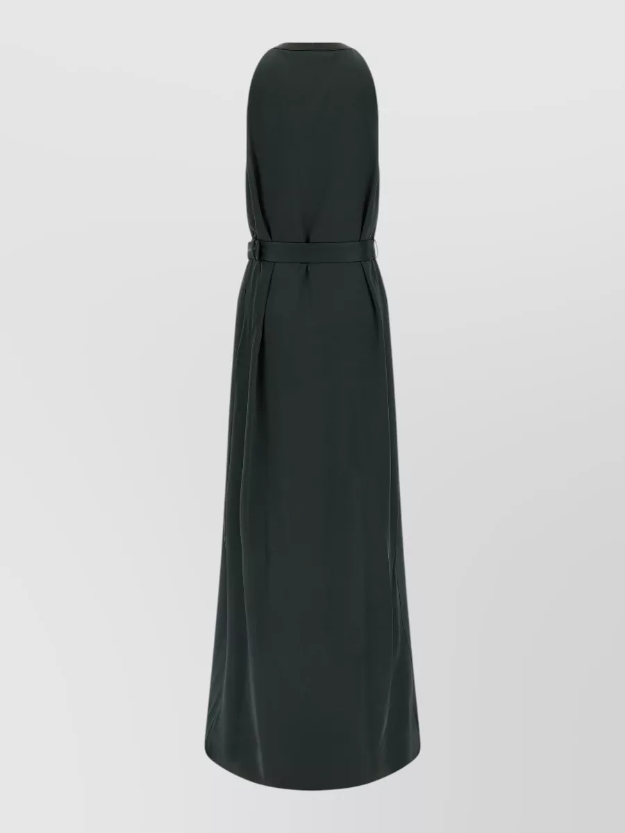 halter neck sleeveless belted floor length dress