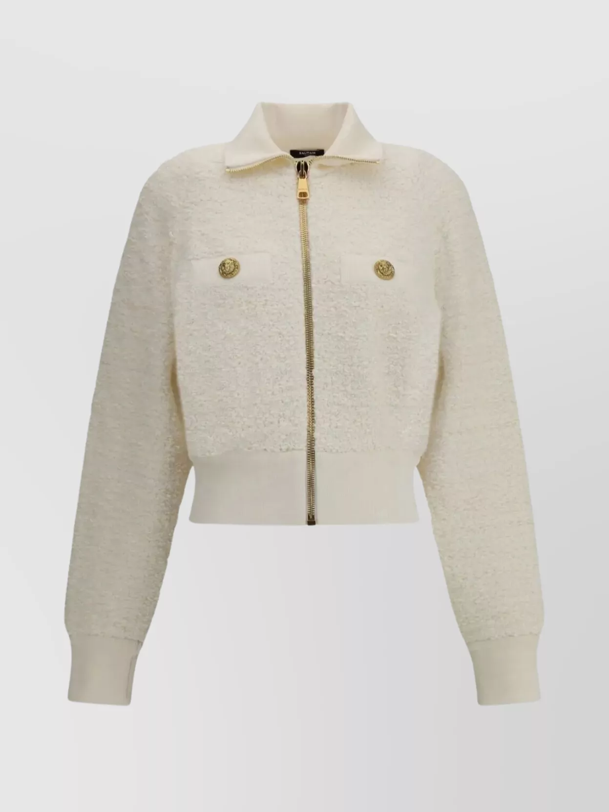Balmain jacquard quilted bomber jacket with ribbed finish