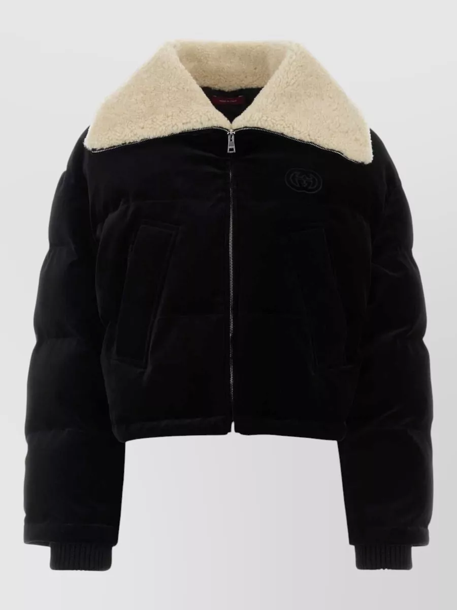 Gucci velvet padded jacket shearling collar quilting