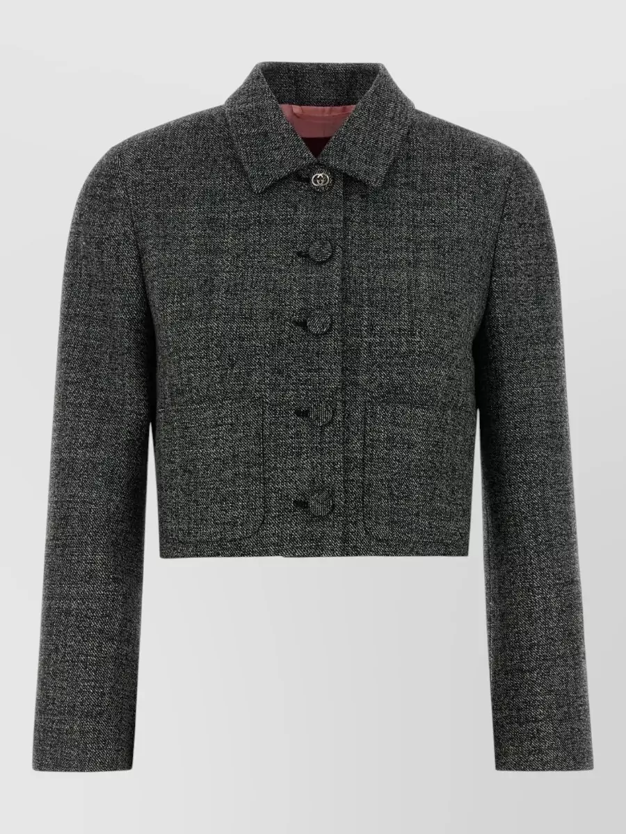 Gucci wool blazer cropped collar long sleeves pockets
