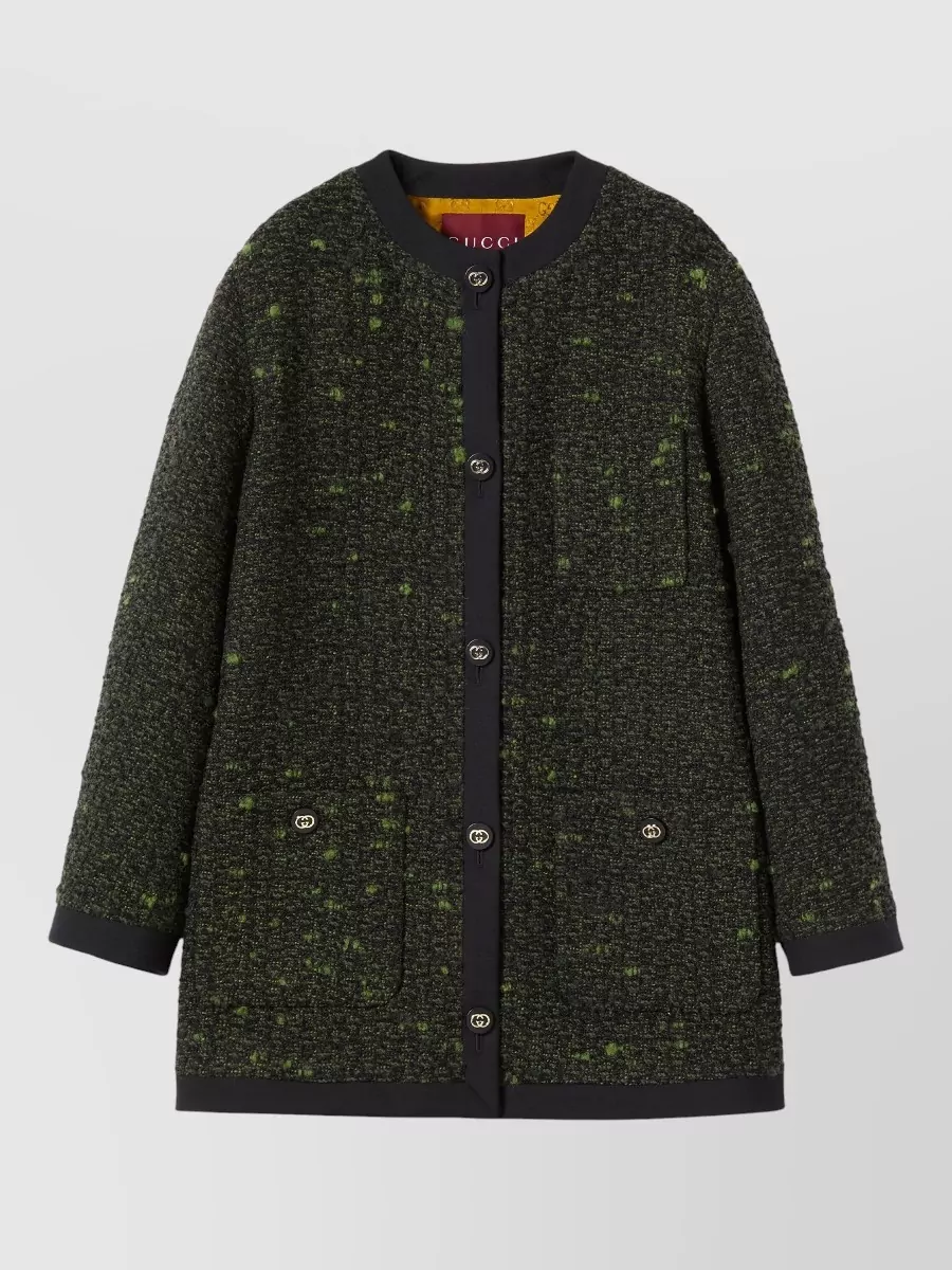 Gucci longline tweed jacket front pockets