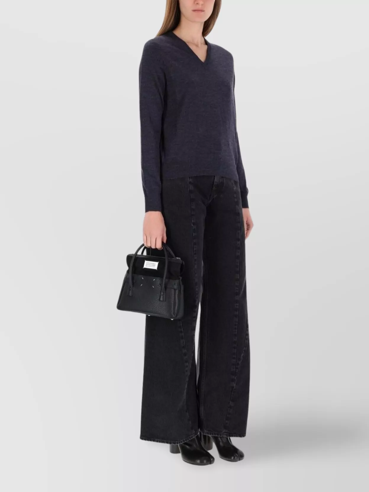 Maison Margiela v neck sweater with long sleeves and ribbed cuffs