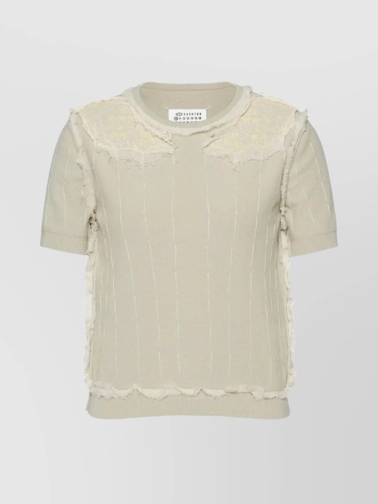 Maison Margiela handcrafted wool sweater with lace and ribbed hem