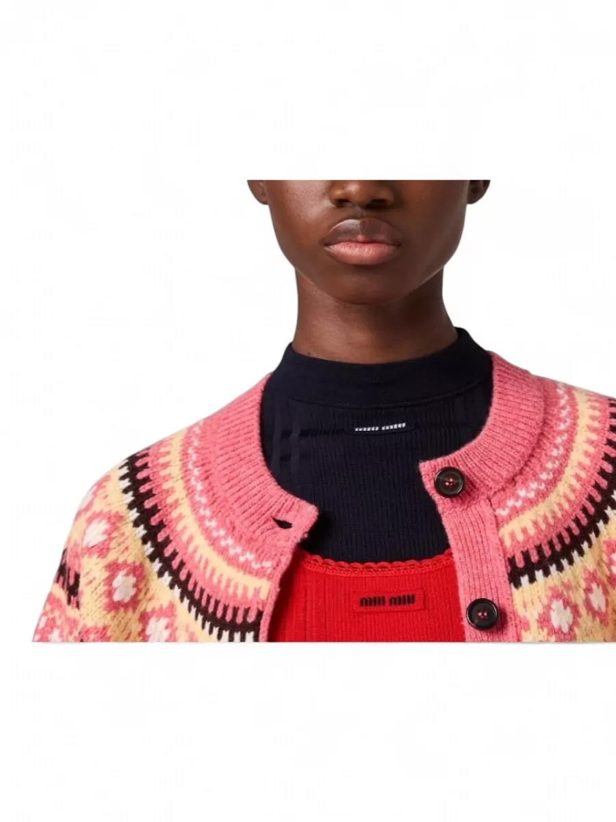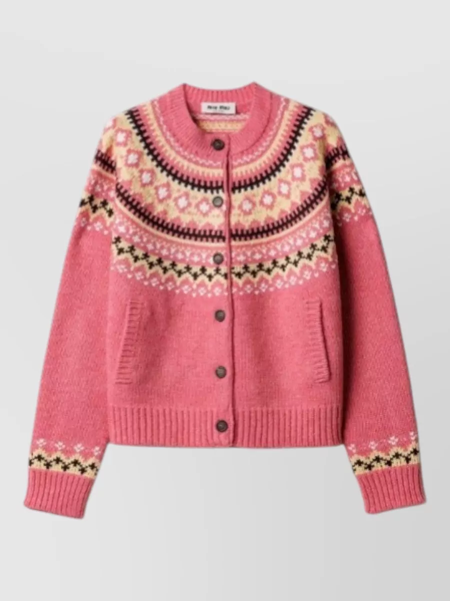 Miu Miu wool fairisle knit crew neck cardigan