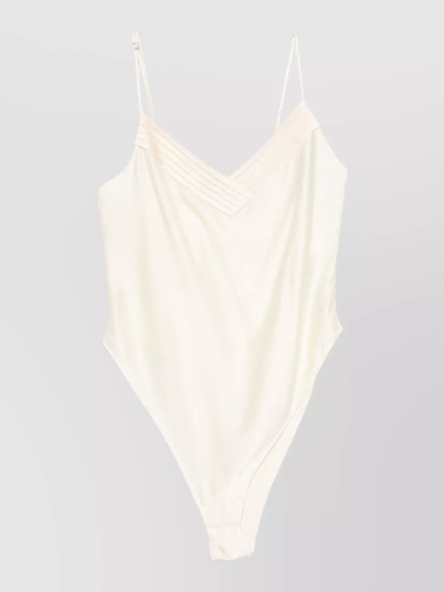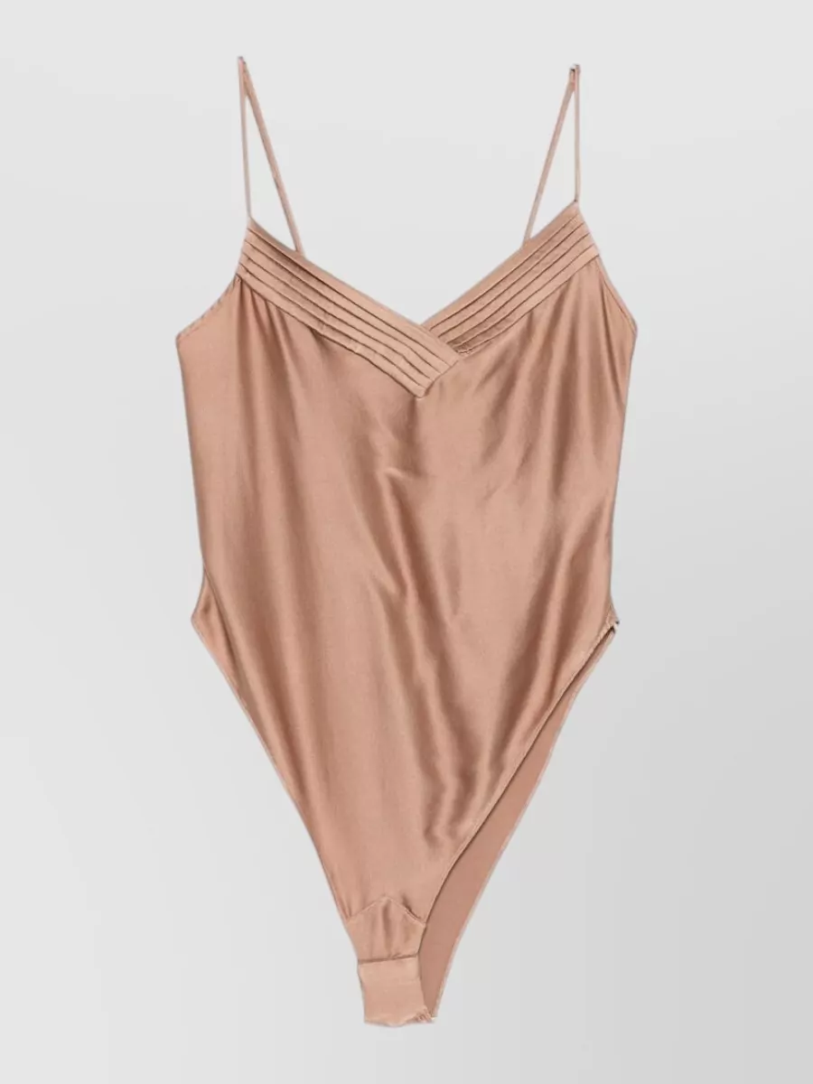 Satin bodysuit ruched pleated sleeveless design
