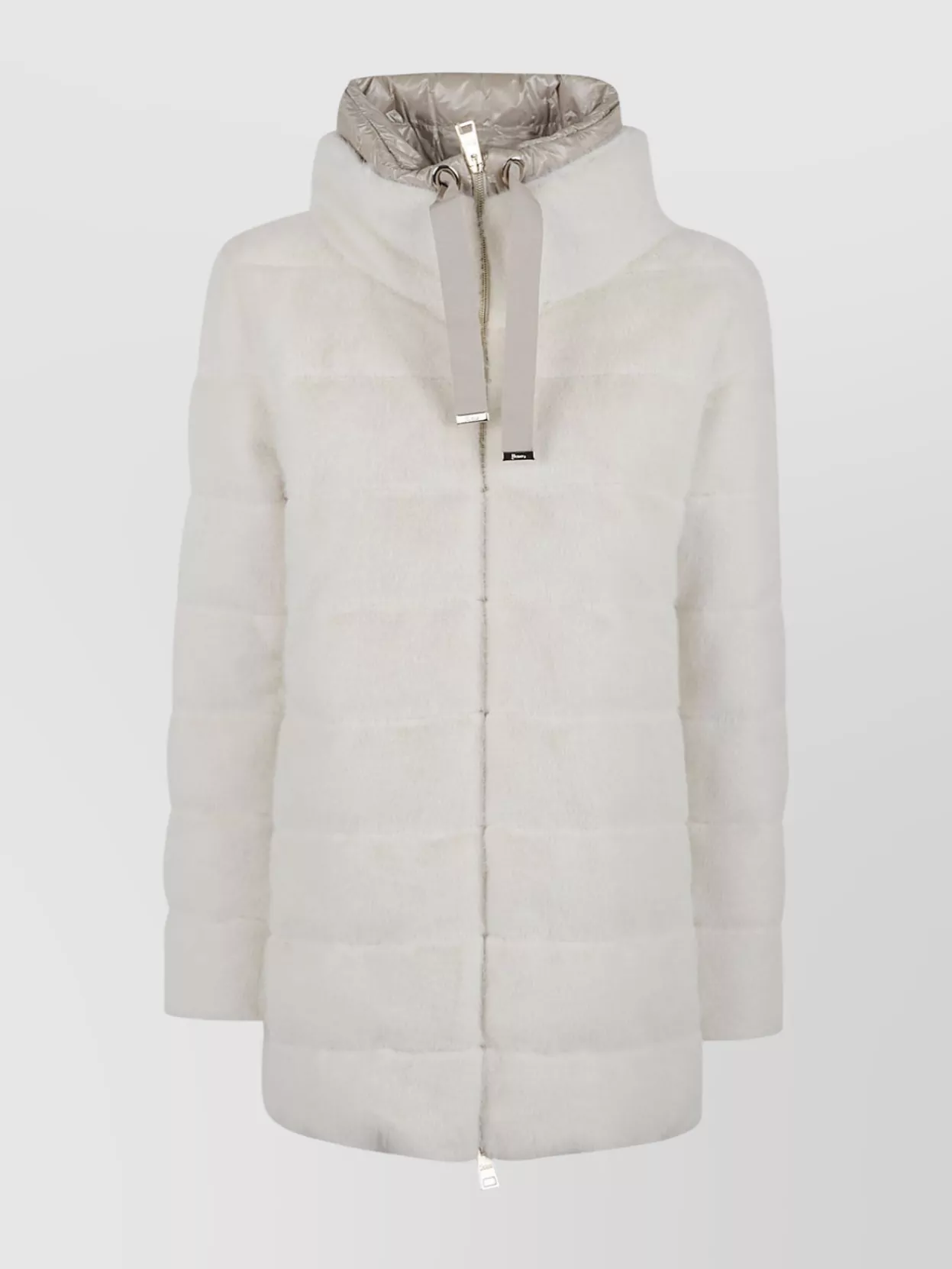 Faux fur down coat with high collar