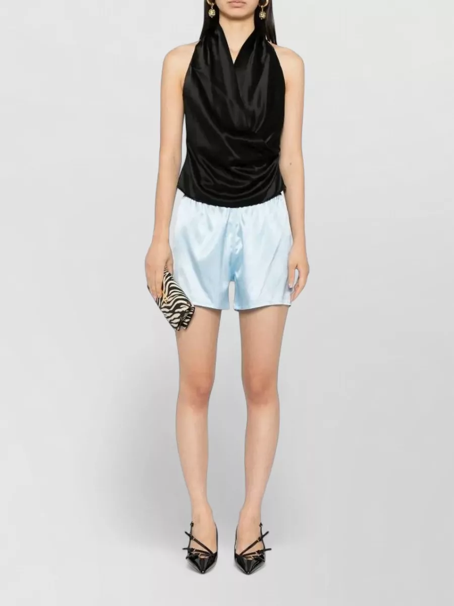 satin finish elastic waistband tailored shorts