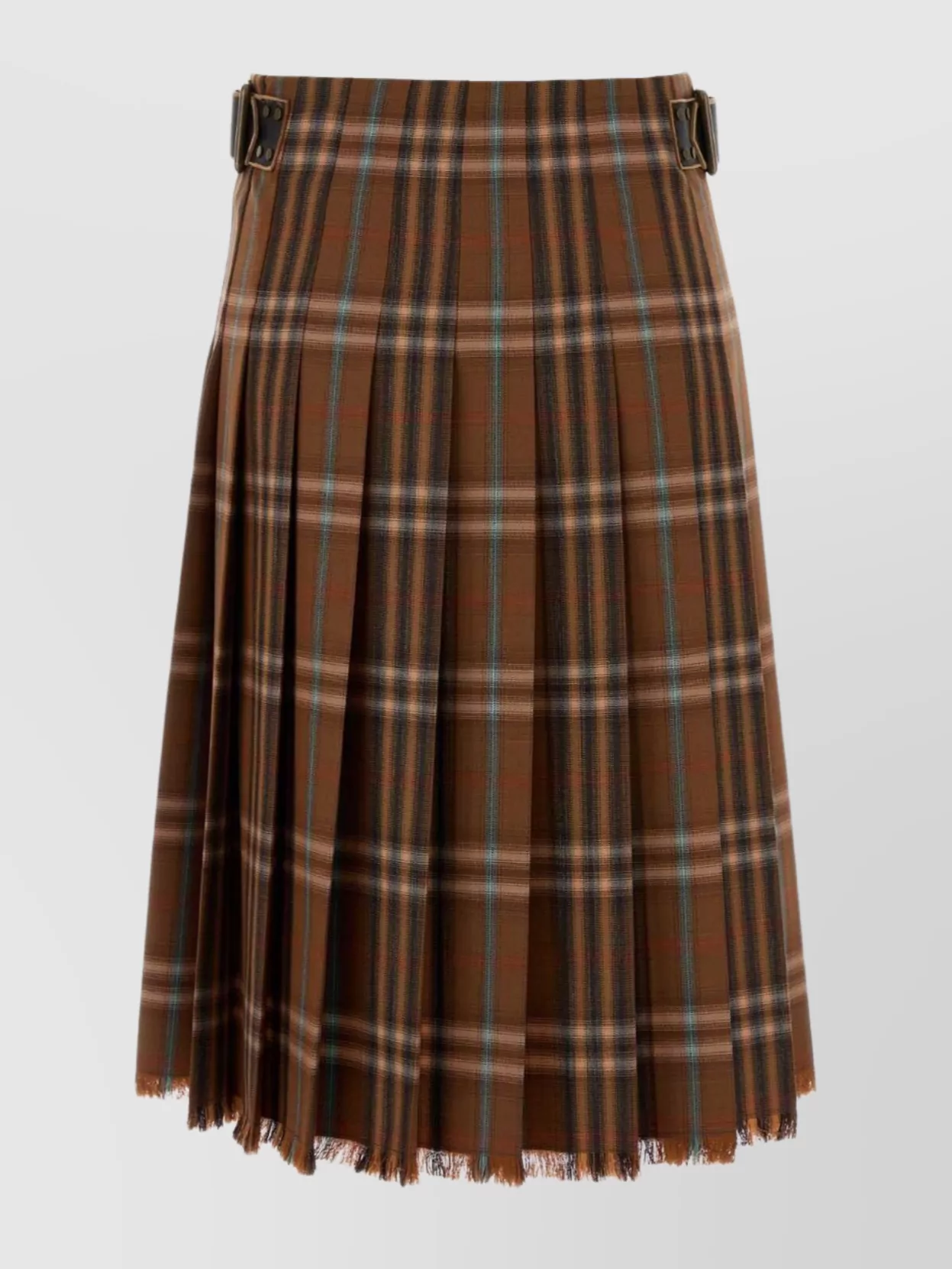 Burberry pleated high waist check pattern kilt skirt with buckle