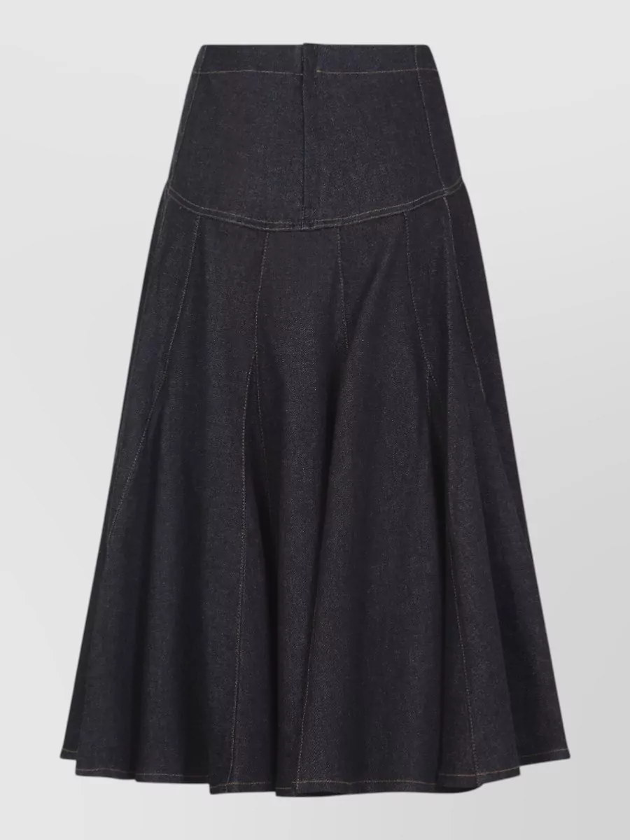 high waist denim skirt contrast stitching