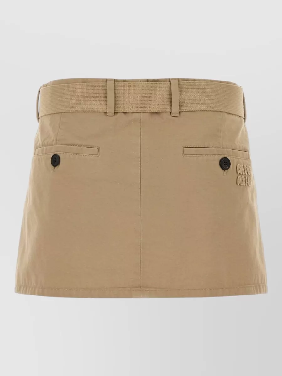 Miu Miu gabardine mini skirt belted waist buttons pleats