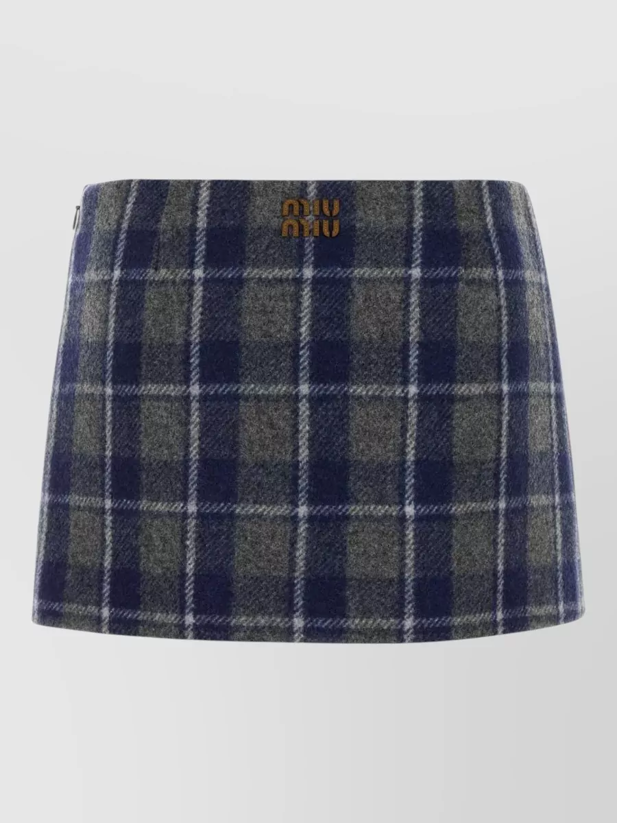 Miu Miu mini skirt with embroidered cotton checkered pattern