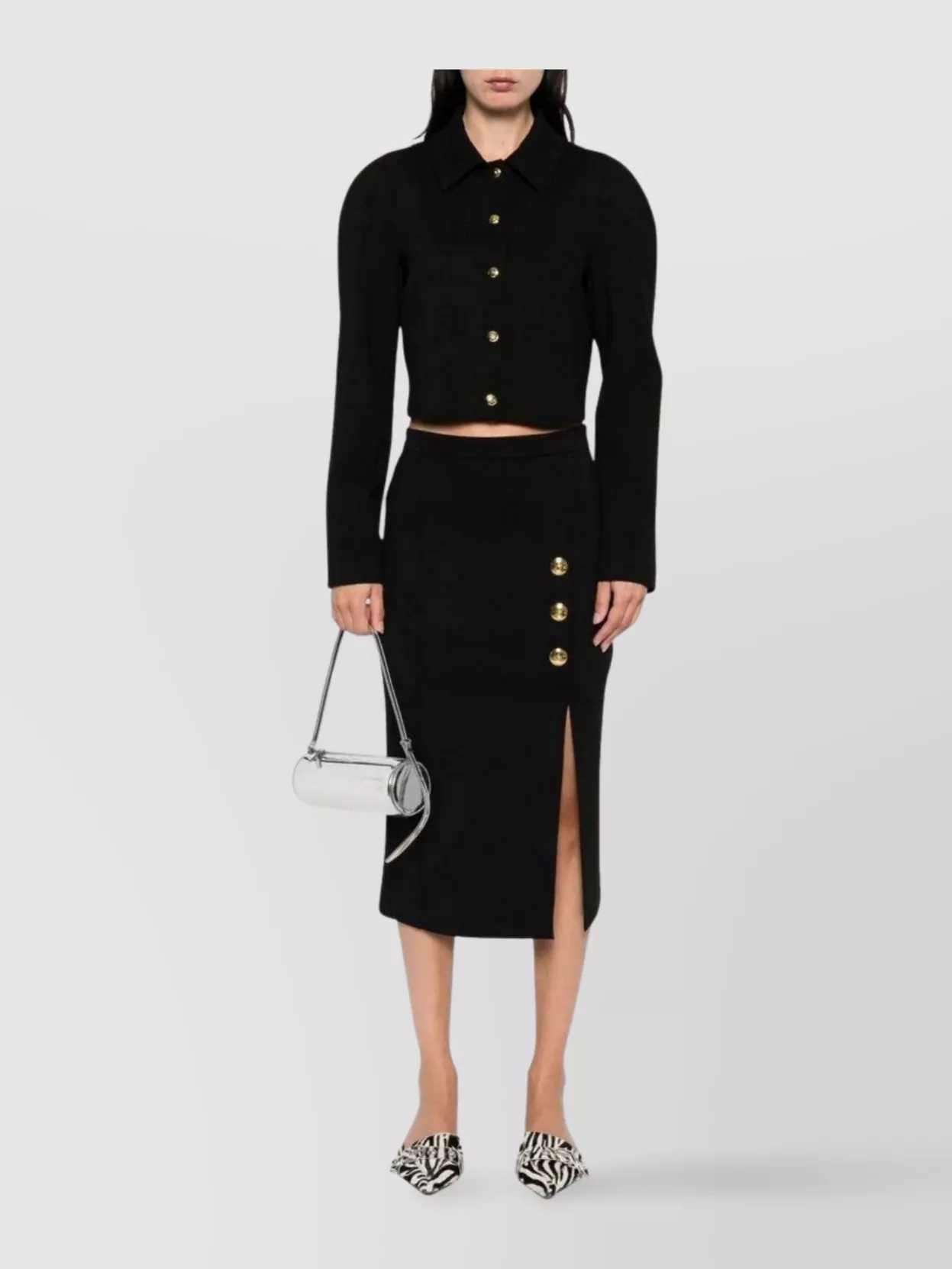 wrap-style high-waisted tweed miniskirt with gold-tone buttons