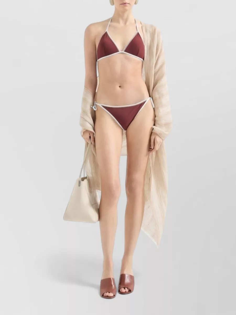 Brunello Cucinelli triangle bikini set halter neck trim