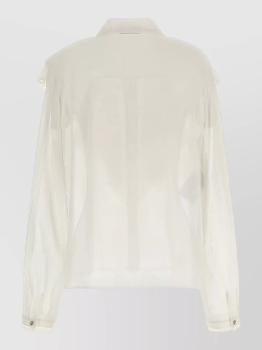 silk shirt collared neck lace trim sheer