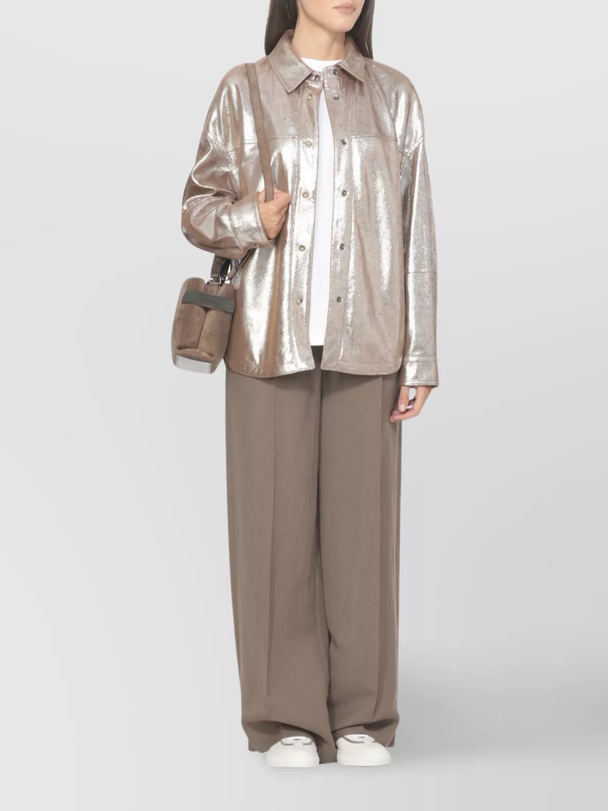 Brunello Cucinelli long sleeve suede shirt with curved hem