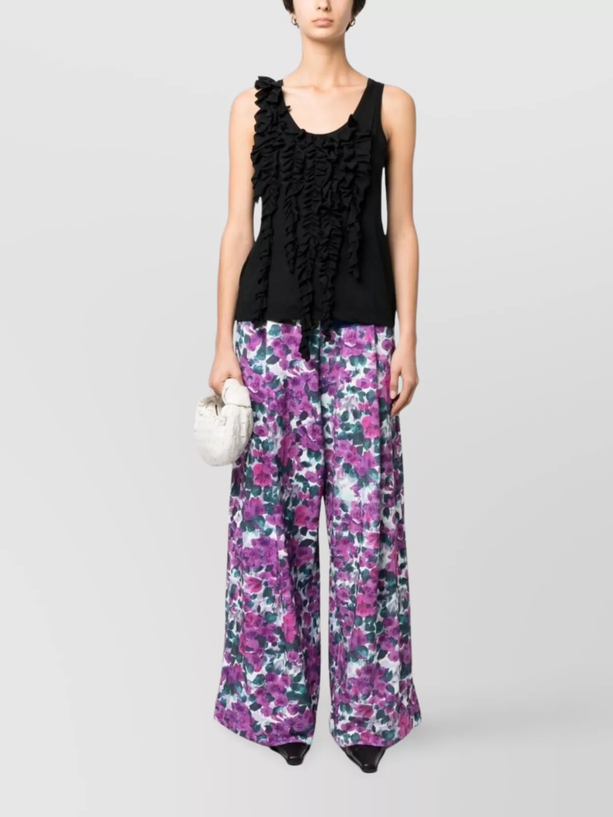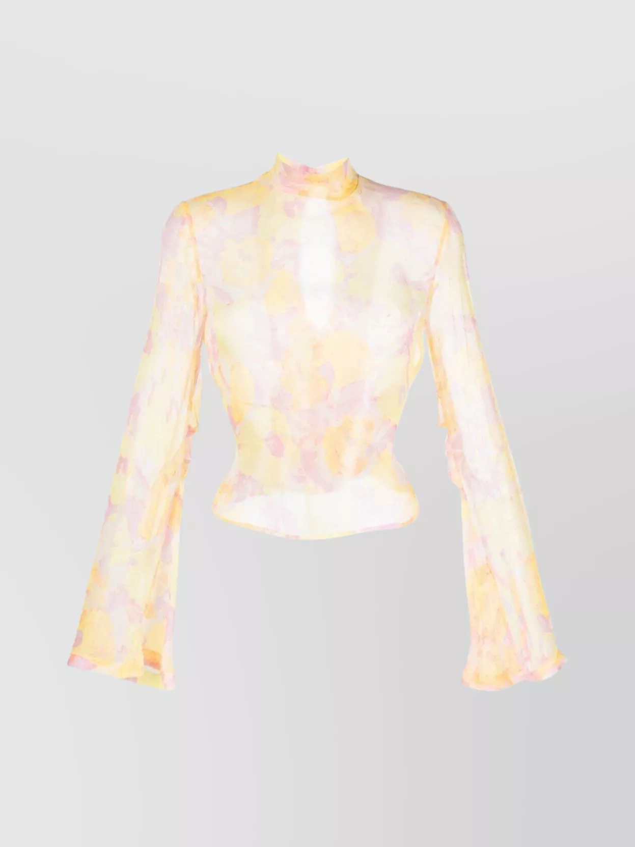 Dries Van Noten sheer floral ruffle detail long sleeve top
