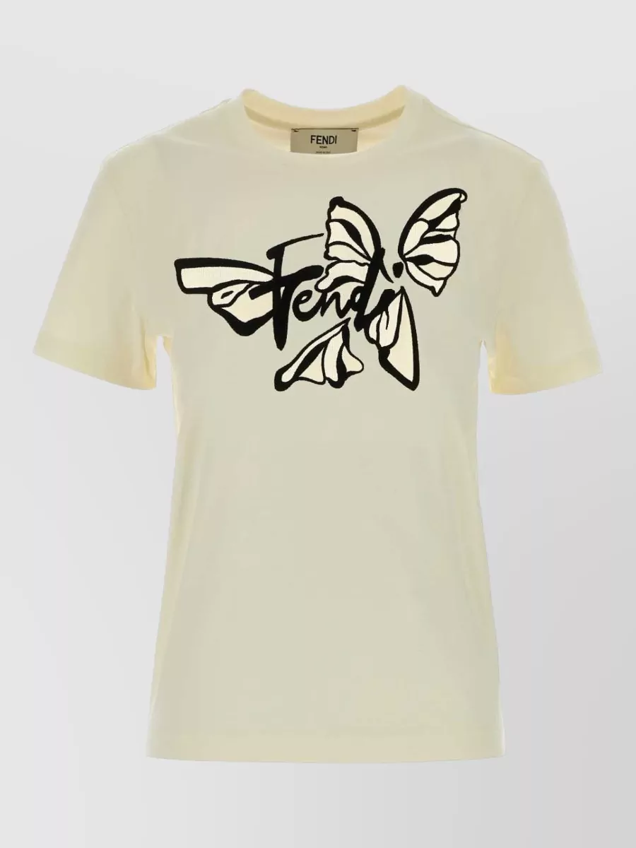Fendi stretch cotton cropped t-shirt with ribbed texture