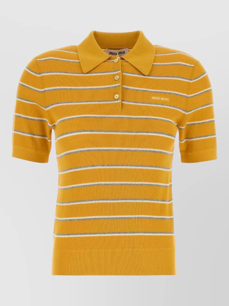 Miu Miu striped polo shirt ribbed hem short sleeves
