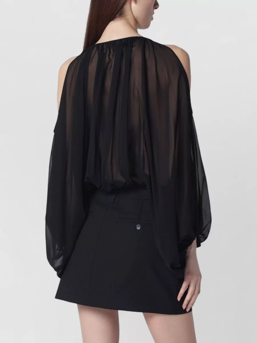 elasticated hem off-the-shoulder puff sleeves top