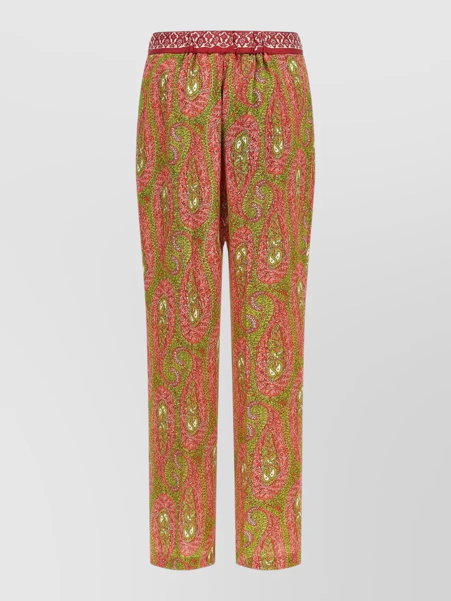 Etro paisley foliage trousers contrasting waistband straight leg
