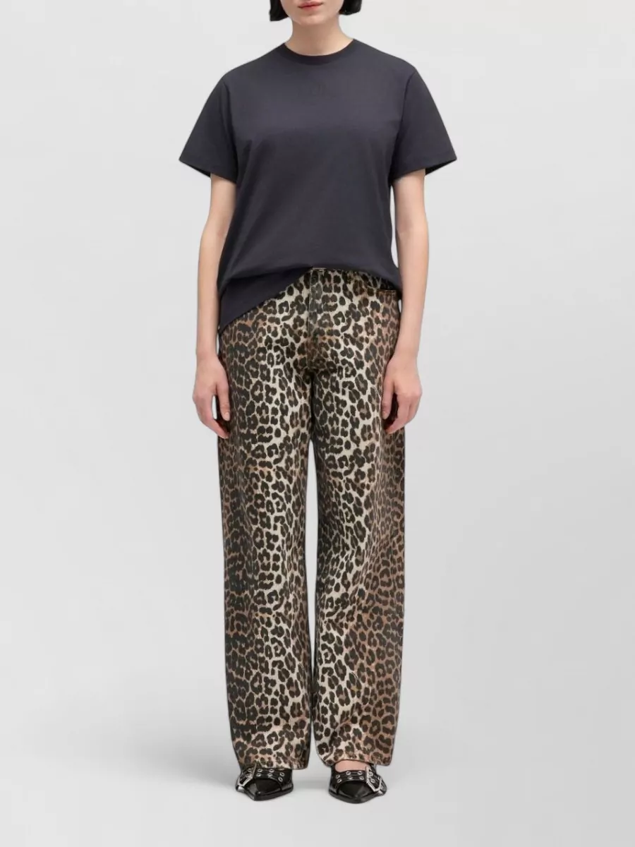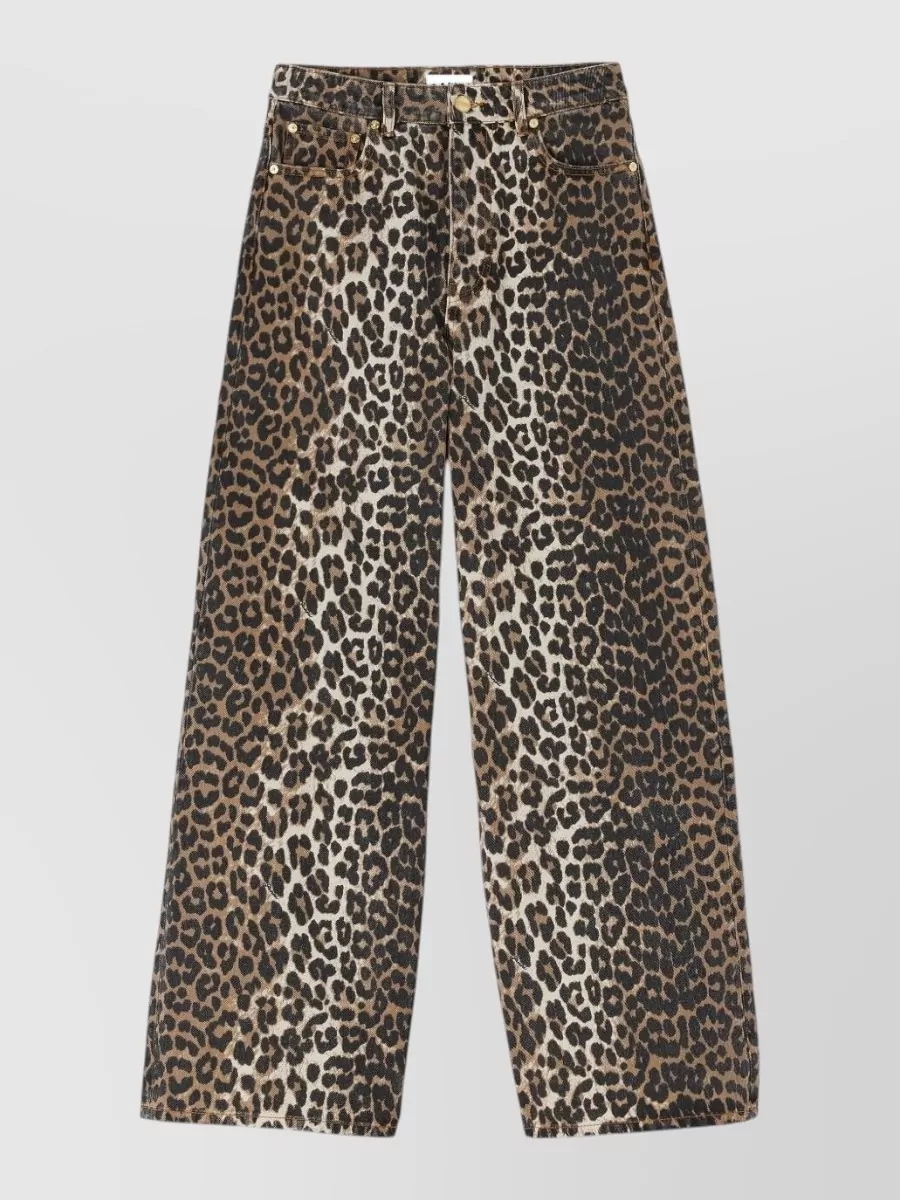 Ganni wide-leg animal print high-rise jeans with belt loops