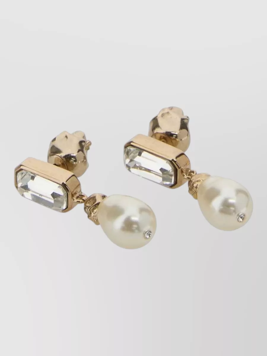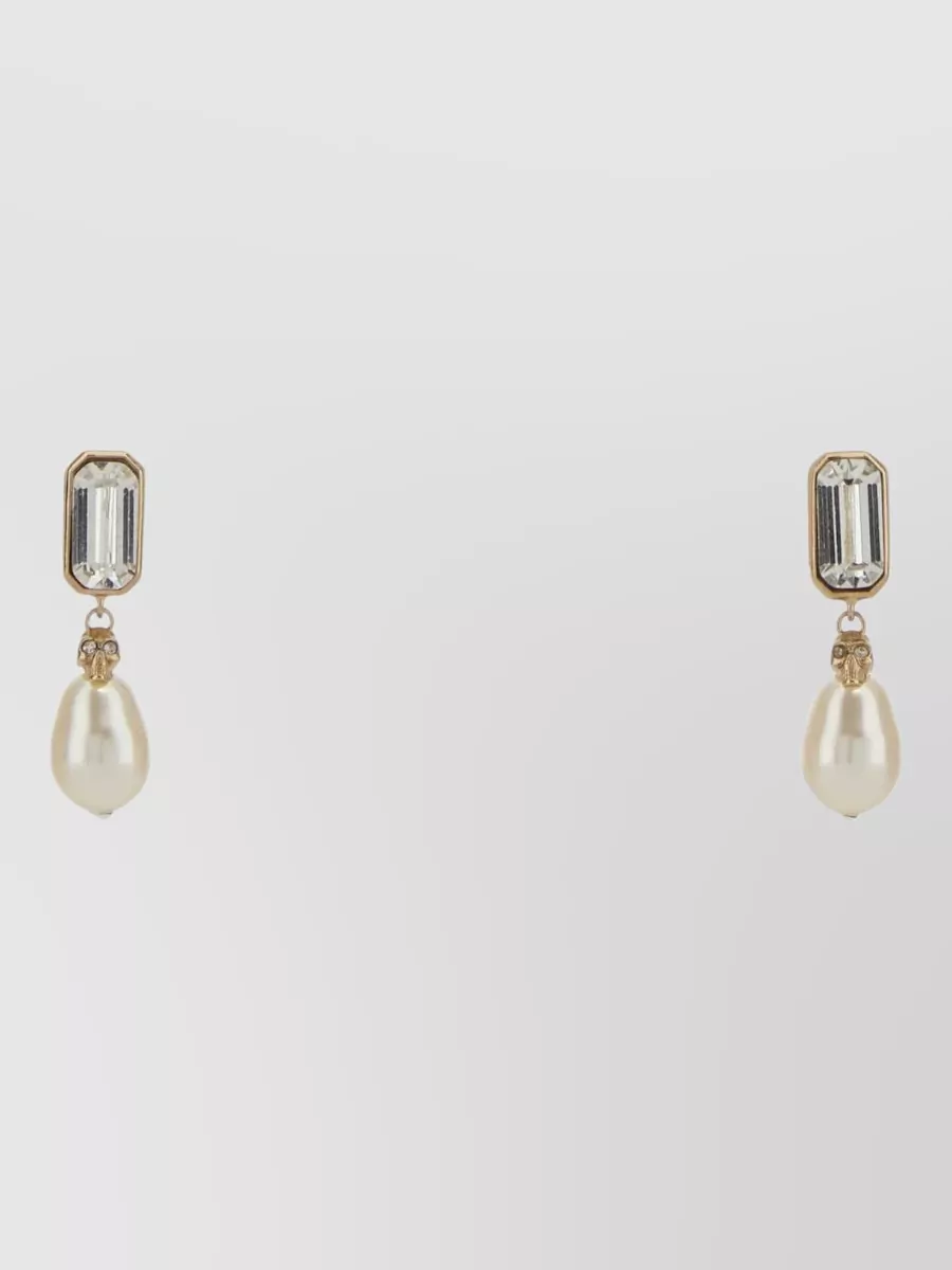 Alexander McQueen skull earrings pearl drop gemstone detail
