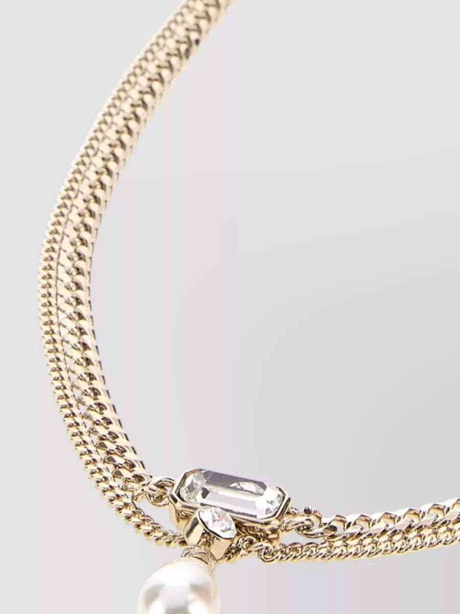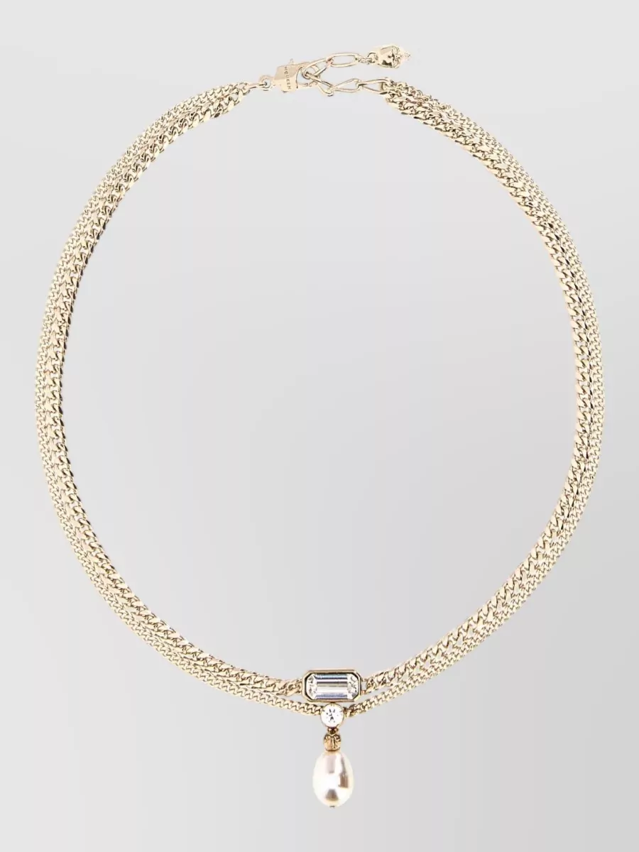 Alexander McQueen metal skull necklace chain pearl gemstone