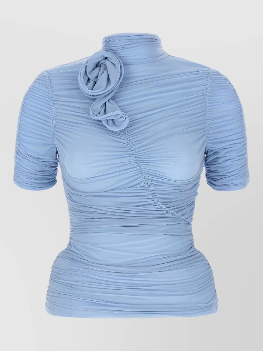 Magda Butrym floral high neck ruched short sleeve top