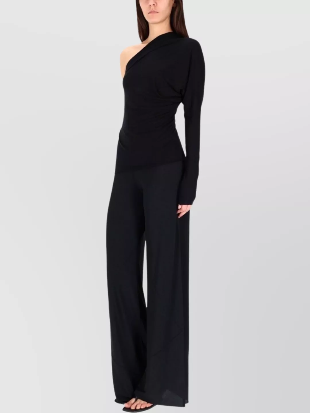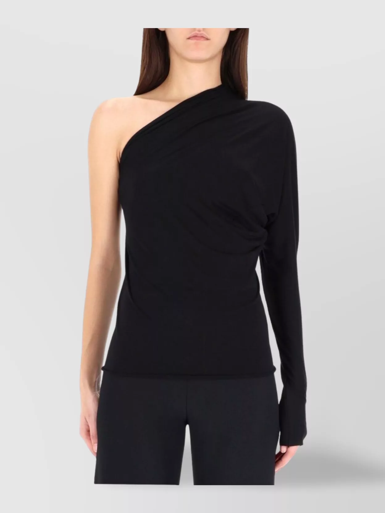 one shoulder long sleeve fitted top