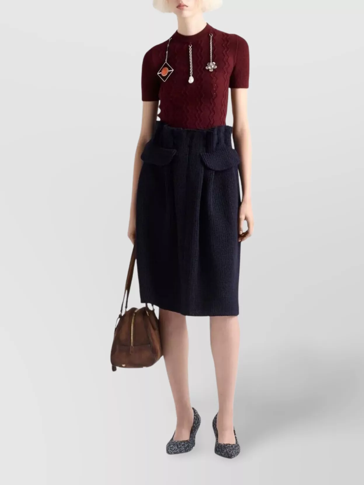 pleated high waist skirt with button detail
