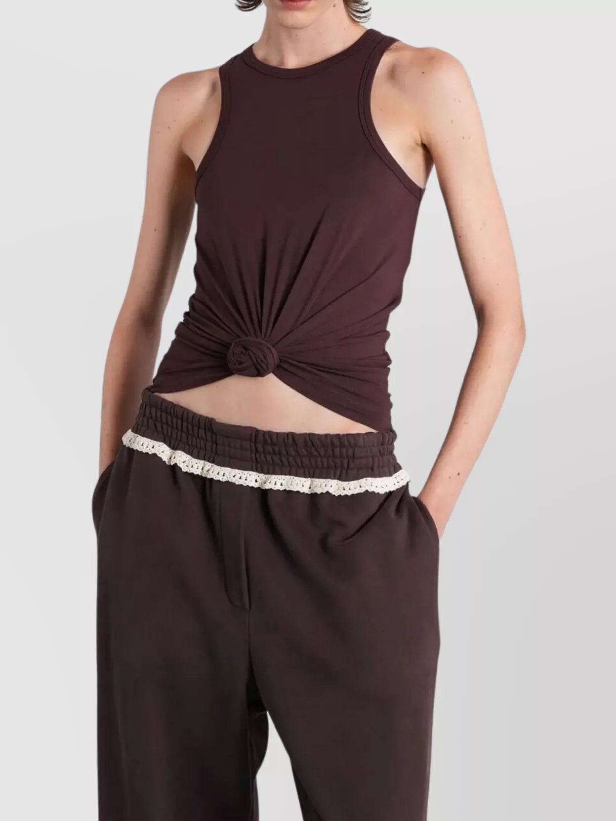knotted racerback sleeveless cropped top