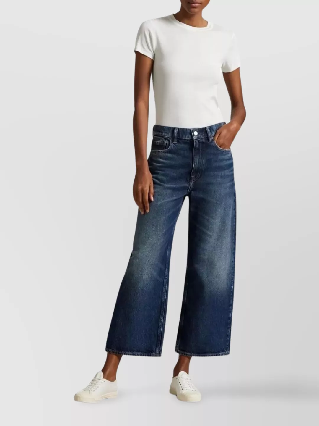 wide leg cropped denim trousers