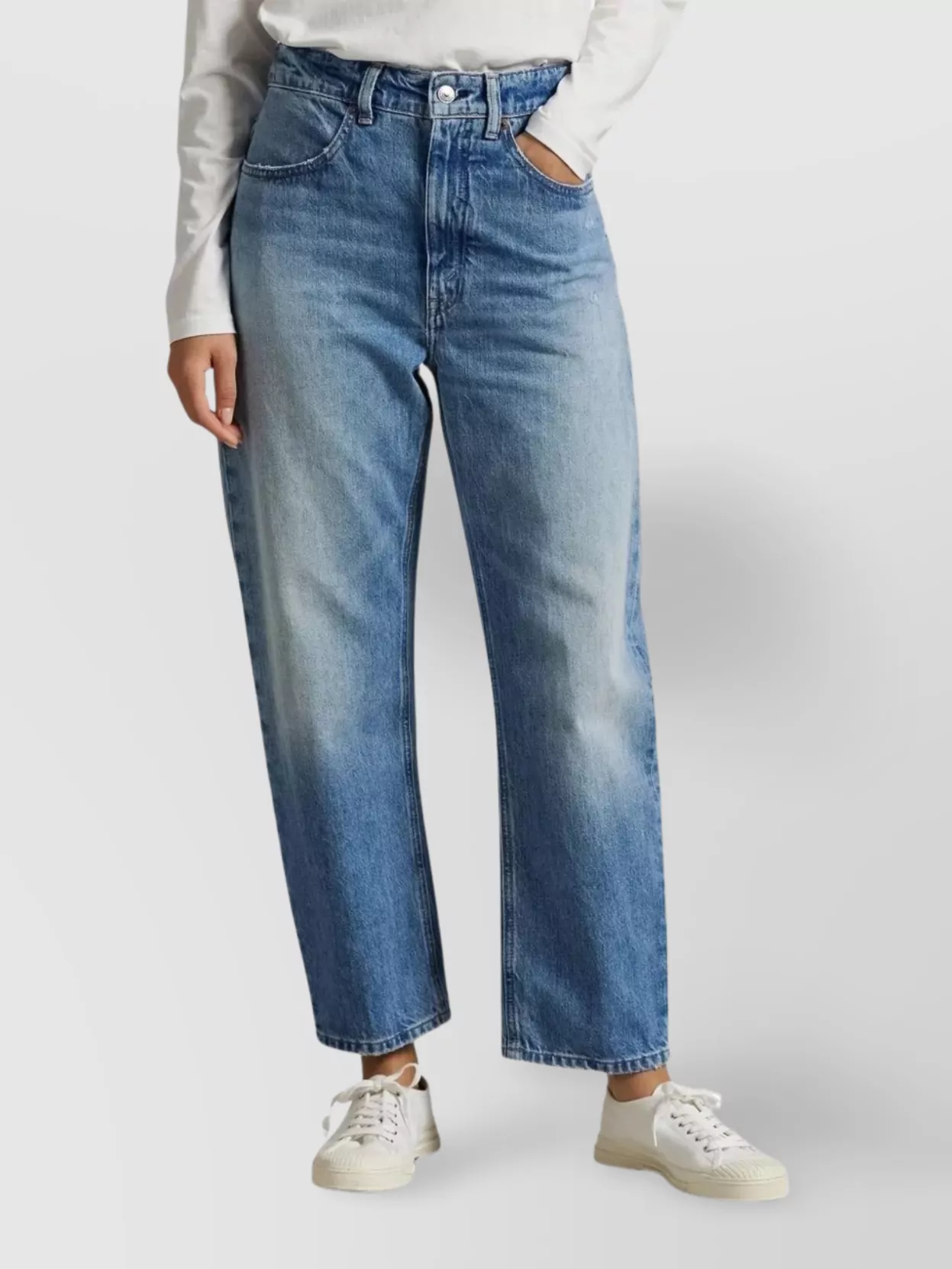high-waisted cropped leg denim trousers