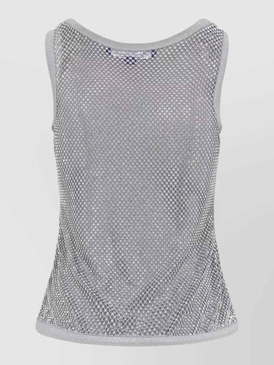 melony mesh metallic scoop neck top