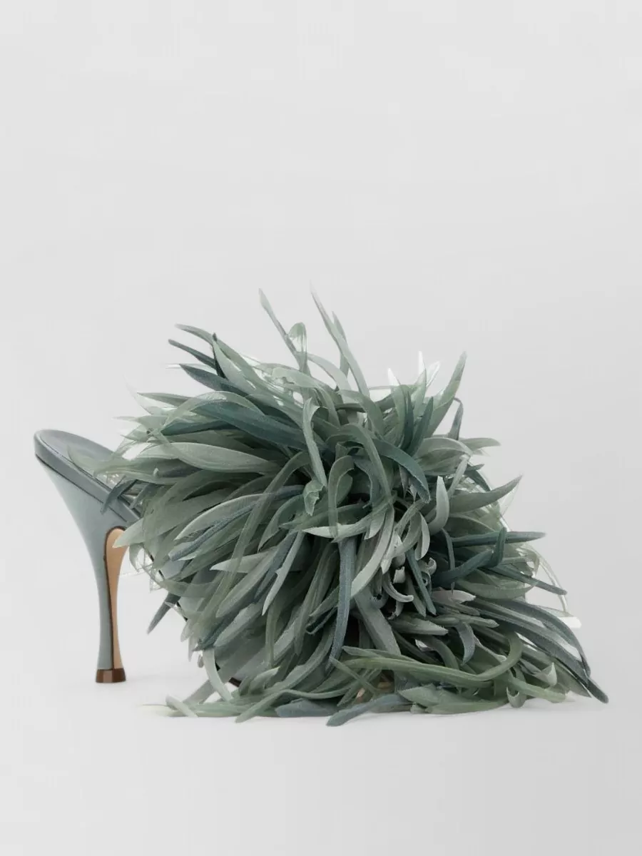 satin mules featuring feather embellishment detail
