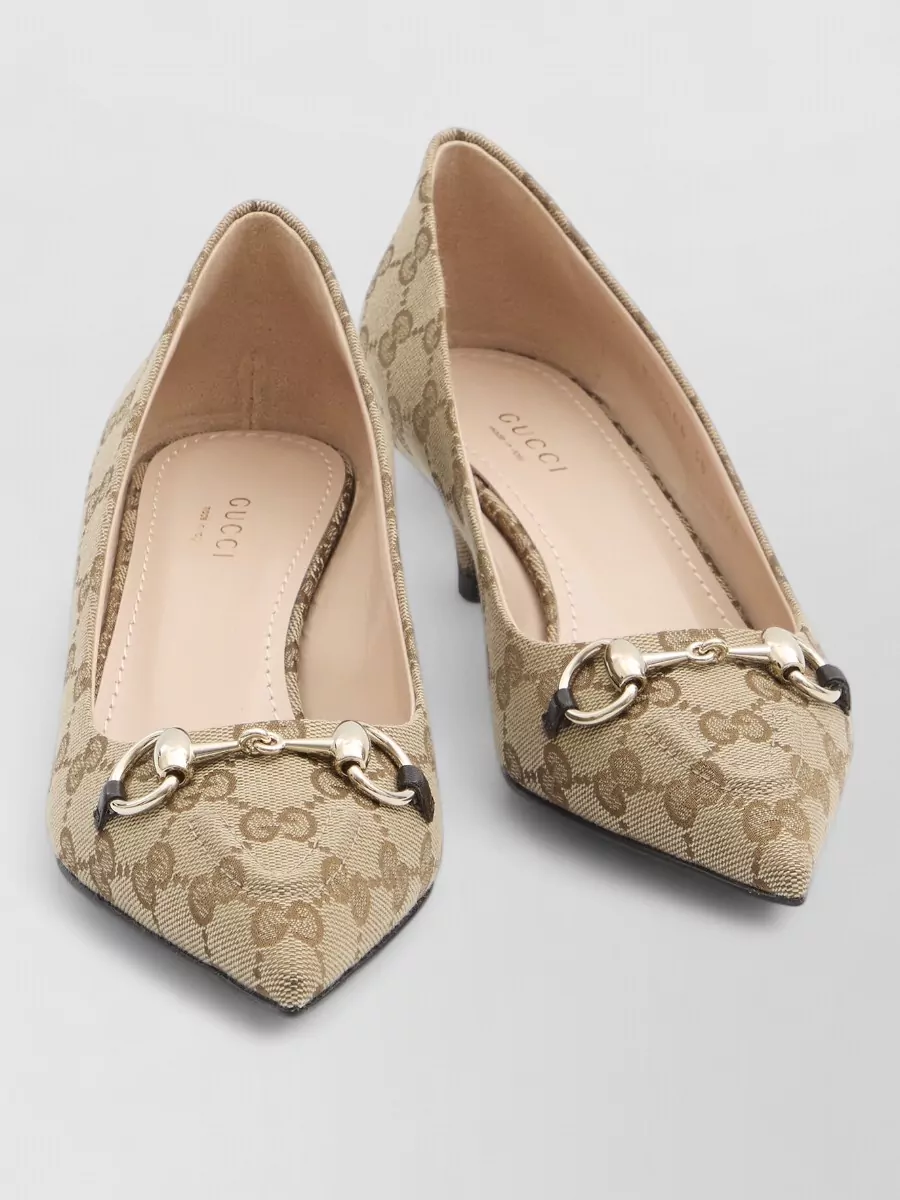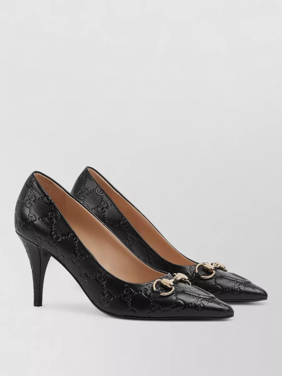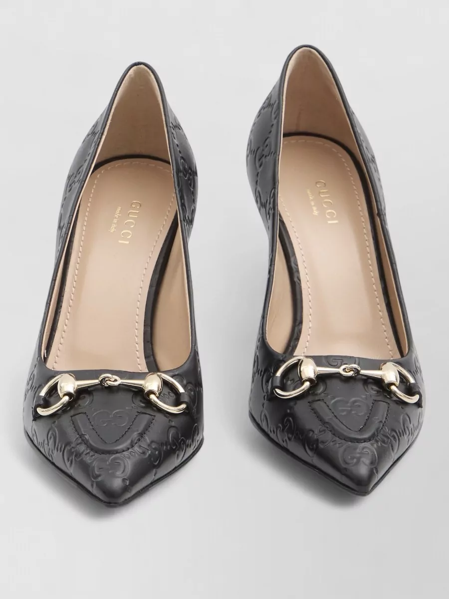 Gucci embossed pattern gold tone hardware pump