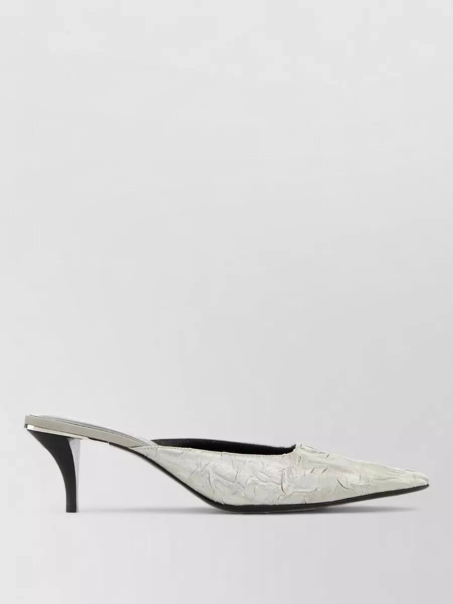 fabric mules pointed toe stiletto heel textured
