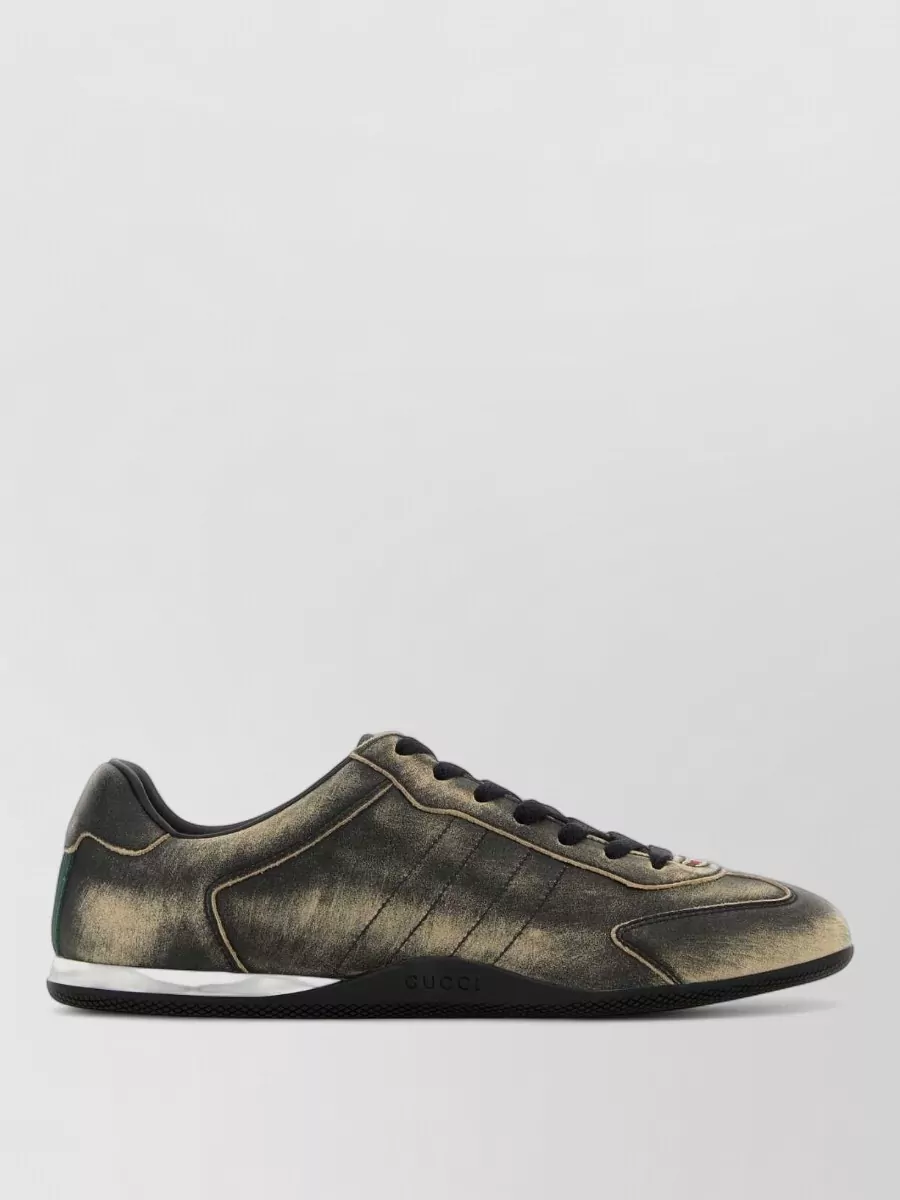Gucci leather sneakers contrast panels low-top silhouette rubber sole